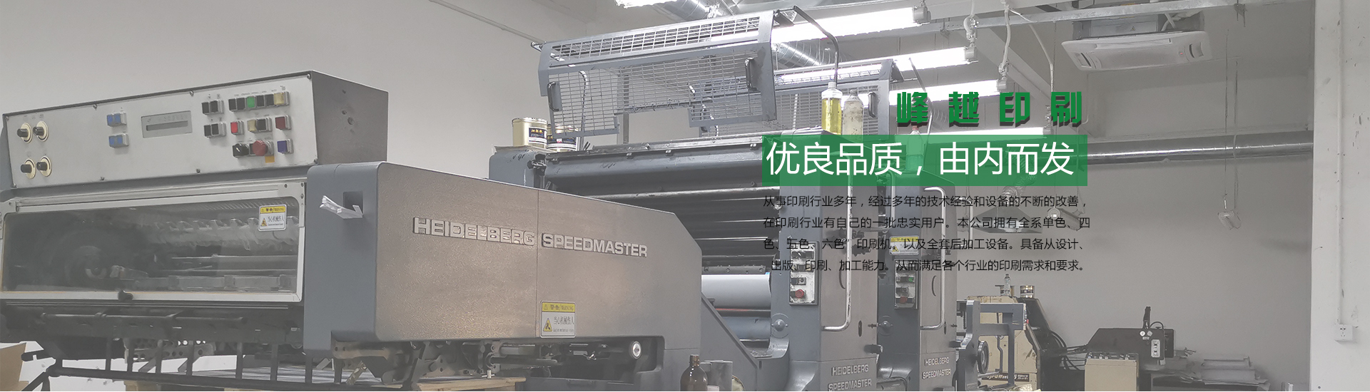 深圳市峰越印刷有限公司創(chuàng)立于2006年,公司建址在有深圳市宇宙中心之稱(chēng)的龍華區(qū)大浪街道。 公司實(shí)力雄厚,主要產(chǎn)品為各類(lèi)電子、電器的包裝彩盒,產(chǎn)品說(shuō)明書(shū)以及貼紙類(lèi)的不干膠。在生產(chǎn)包裝盒方面:公司有海德堡四色印刷機(jī)多臺(tái)及印后過(guò)膠工序的各類(lèi)機(jī)器,如裱坑機(jī),自動(dòng)粘盒機(jī)各一臺(tái)、啤機(jī)兩臺(tái);產(chǎn)品說(shuō)明書(shū)方面有海德堡對(duì)開(kāi)底面機(jī)一臺(tái)、富士印刷機(jī)一臺(tái),中景印刷機(jī)一臺(tái)。不干膠機(jī)有:臺(tái)灣大升機(jī)210一臺(tái)、建鴻不干膠機(jī)250一臺(tái)并有一批資深技術(shù)師傅為公司的生產(chǎn)保駕護(hù)航。 公司客戶(hù)遍及珠三角,分別有日資企業(yè)、港資企業(yè)、臺(tái)資企業(yè)及國(guó)內(nèi)本土企業(yè)。 公司成立以來(lái),一直秉承以質(zhì)量求生存,以信譽(yù)謀發(fā)展的企業(yè)宗旨,努力使公司在印刷業(yè)這條道路上越走越穩(wěn)鍵,越走越寬闊。希望為更多企業(yè)提供更加貼心的包裝印刷服務(wù),歡迎廣大客戶(hù)來(lái)廠(chǎng)參觀(guān)、指導(dǎo)!
